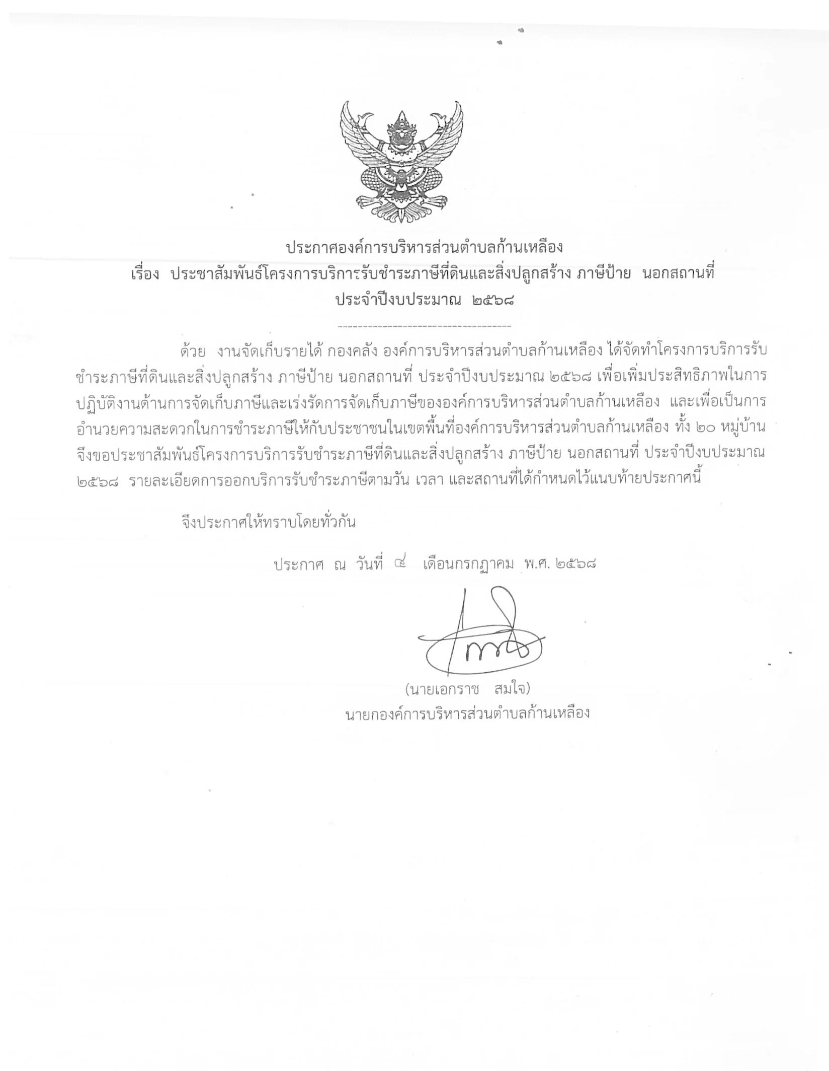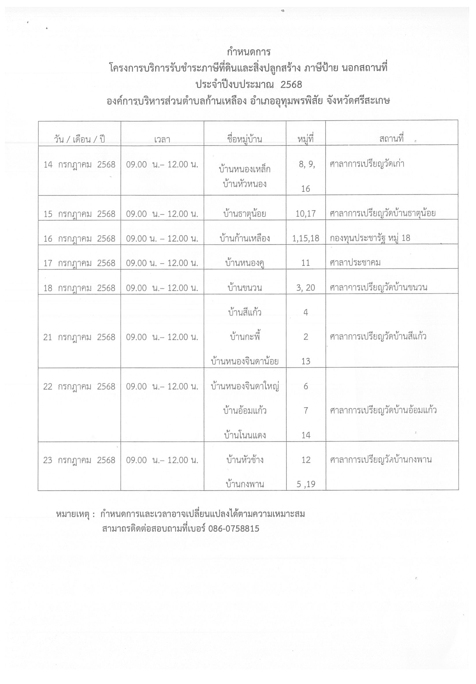āļ›āļĢāļ°āļŠāļēāļŠāļąāļĄāļžāļąāļ™āļ˜āđŒ āļāļģāļŦāļ™āļ”āļāļēāļĢāđ‚āļ„āļĢāļ‡āļāļēāļĢāļšāļĢāļīāļāļēāļĢāļĢāļąāļšāļŠāļģāļĢāļ°āļ āļēāļĐāļĩāļ—āļĩāđˆāļ”āļīāļ™āđāļĨāļ°āļŠāļīāđˆāļ‡āļ›āļĨāļđāļāļŠāļĢāđ‰āļēāļ‡ āļ āļēāļĐāļĩāļ›āđ‰āļēāļĒ āļ™āļ­āļāļŠāļ–āļēāļ™āļ—āļĩāđˆ āļ›āļĢāļ°āļˆāļģāļ›āļĩāļ‡āļšāļ›āļĢāļąāļĄāļēāļ“ āļž.āļĻ.2568