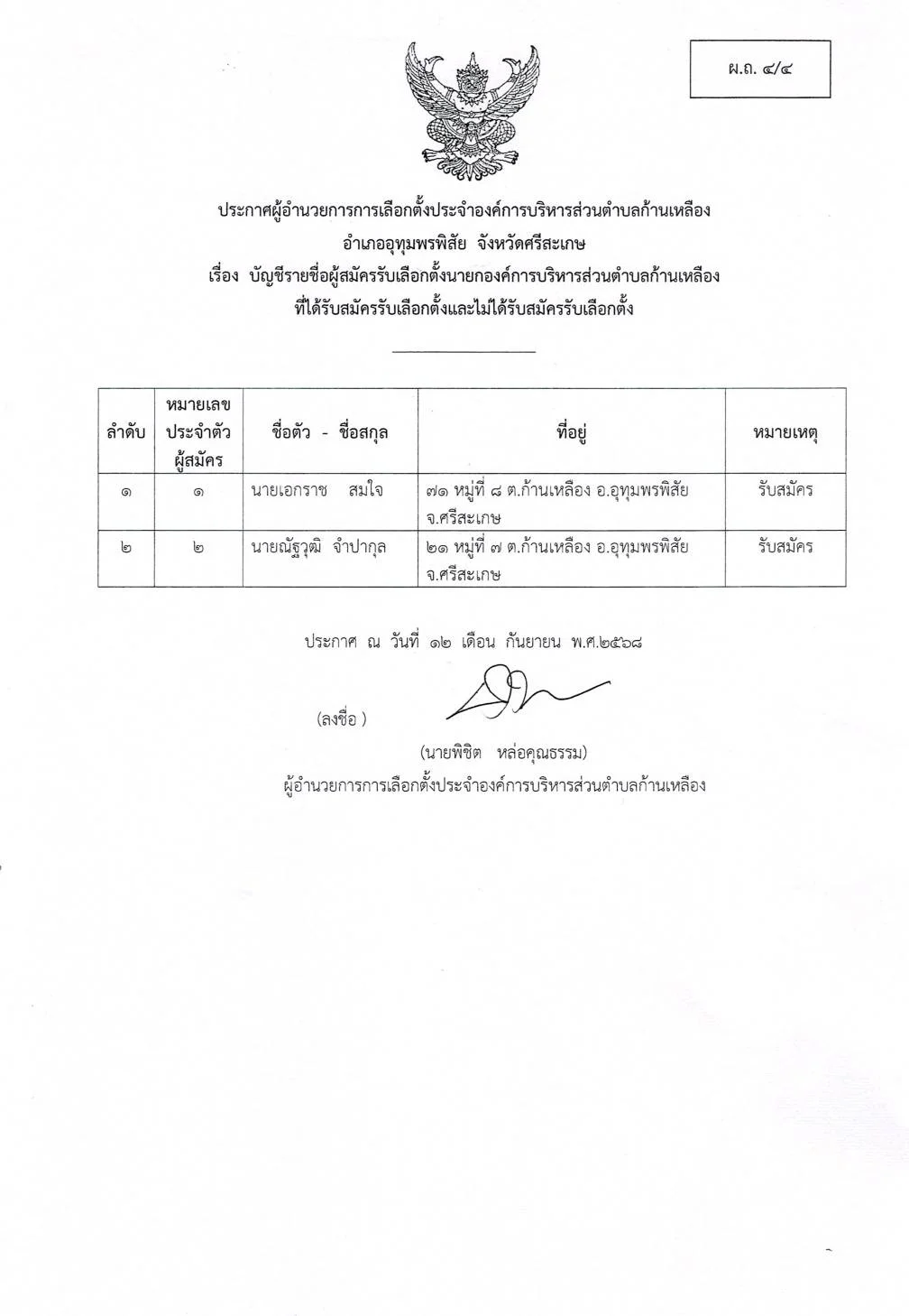 āđ€āļĢāļ·āđˆāļ­āļ‡ āļšāļąāļāļŠāļĩāļĢāļēāļĒāļŠāļ·āđˆāļ­āļœāļđāđ‰āļŠāļĄāļąāļ„āļĢāļĢāļąāļšāđ€āļĨāļ·āļ­āļāļ•āļąāđ‰āļ‡āļ™āļēāļĒāļāļ­āļ‡āļ„āđŒāļāļēāļĢāļšāļĢāļīāļŦāļēāļĢāļŠāđˆāļ§āļ™āļ•āļģāļšāļĨāļāđ‰āļēāļ™āđ€āļŦāļĨāļ·āļ­āļ‡ āļ—āļĩāđˆāđ„āļ”āđ‰āļĢāļąāļšāļŠāļĄāļąāļ„āļĢāļĢāļąāļšāđ€āļĨāļ·āļ­āļāļ•āļąāđ‰āļ‡āđāļĨāļ°āđ„āļĄāđˆāđ„āļ”āđ‰āļŠāļĄāļąāļ„āļĢāļĢāļąāļšāđ€āļĨāļ·āļ­āļāļ•āļąāđ‰āļ‡ (āļœ.āļ–. 4/4)