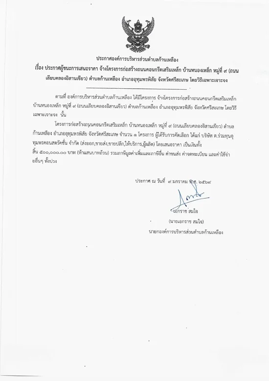 āļ›āļĢāļ°āļāļēāļĻāļ­āļ‡āļ„āđŒāļāļēāļĢāļšāļĢāļīāļŦāļēāļĢāļŠāđˆāļ§āļ™āļ•āļģāļšāļĨāļāđ‰āļēāļ™āđ€āļŦāļĨāļ·āļ­āļ‡ āđ€āļĢāļ·āđˆāļ­āļ‡ āļ›āļĢāļ°āļāļēāļĻāļœāļđāđ‰āļŠāļ™āļ°āļāļēāļĢāđ€āļŠāļ™āļ­āļĢāļēāļ„āļē āļˆāđ‰āļēāļ‡āđ‚āļ„āļĢāļ‡āļāļēāļĢāļ–āļ™āļ™āļ„āļ­āļ™āļāļĢāļĩāļ•āđ€āļŠāļĢāļīāļĄāđ€āļŦāļĨāđ‡āļ āļšāđ‰āļēāļ™āļŦāļ™āļ­āļ‡āļŦāļ™āļ­āļ‡āđ€āļŦāļĨāđ‡āļ āļŦāļĄāļđāđˆāļ—āļĩāđˆ 19