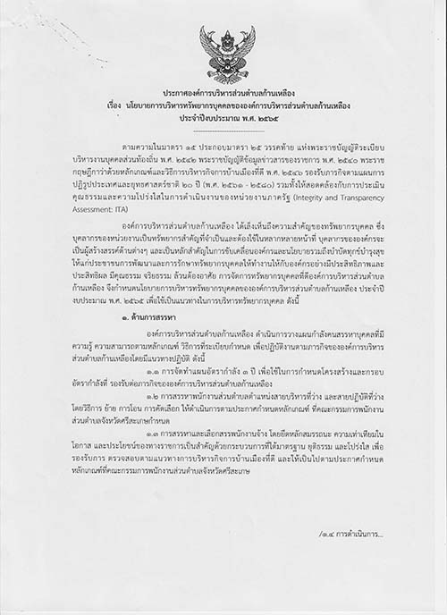 āļ›āļĢāļ°āļāļēāļĻāļ­āļ‡āļ„āđŒāļāļēāļĢāļšāļĢāļŦāļēāļĢāļŠāđˆāļ§āļ™āļ•āļģāļšāļĨāļāđ‰āļēāļ™āđ€āļŦāļĨāļ·āļ­āļ‡ āđ€āļĢāļ·āđˆāļ­āļ‡ āļ™āđ‚āļĒāļšāļēāļĒ āļāļĨāļĒāļļāļ—āļ˜āđŒāļāļēāļĢāļšāļĢāļīāļŦāļēāļĢāđāļĨāļ°āļāļēāļĢāļžāļąāļ’āļ™āļēāļ—āļĢāļąāļžāļĒāļēāļāļĢāļšāļļāļ„āļ„āļĨāļ‚āļ­āļ‡āļ­āļ‡āļ„āđŒāļāļēāļĢāļšāļĢāļīāļŦāļēāļĢāļŠāđˆāļ§āļ™āļ•āļģāļšāļĨāļāđ‰āļēāļ™āđ€āļŦāļĨāļ·āļ­āļ‡ āļ›āļĢāļ°āļˆāļģāļ›āļĩāļ‡āļšāļ›āļĢāļ°āļĄāļēāļ“ 2565
