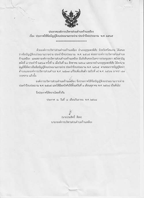 āļ›āļĢāļ°āļāļēāļĻāļ­āļ‡āļ„āđŒāļāļēāļĢāļšāļĢāļīāļŦāļēāļĢāļŠāđˆāļ§āļ™āļ•āļģāļšāļĨāļāđ‰āļēāļ™āđ€āļŦāļĨāļ·āļ­āļ‡ āđ€āļĢāļ·āđˆāļ­āļ‡ āļ›āļĢāļ°āļāļēāļĻāđƒāļŠāđ‰āļ‚āđ‰āļ­āļšāļąāļ•āļīāļāļąāļ•āļīāļ‡āļšāļ›āļĢāļ°āļĄāļēāļ“āļĢāļēāļĒāļˆāđˆāļēāļĒ āļ›āļĢāļ°āļˆāļģāļ›āļĩāļ‡āļšāļ›āļĢāļ°āļĄāļēāļ“ āļž.āļĻ. 2565