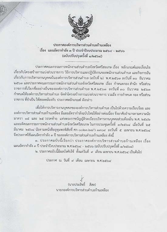 āļ›āļĢāļ°āļāļēāļĻāļ­āļ‡āļ„āđŒāļāļēāļĢāļšāļĢāļŦāļēāļĢāļŠāđˆāļ§āļ™āļ•āļģāļšāļĨāļāđ‰āļēāļ™āđ€āļŦāļĨāļ·āļ­āļ‡ āđ€āļĢāļ·āđˆāļ­āļ‡ āđāļœāļ™āļ­āļąāļ•āļĢāļēāļāļģāļĨāļąāļ‡ 3 āļ›āļĩ āļ›āļĢāļ°āļˆāļģāļ›āļĩāļ‡āļšāļ›āļĢāļ°āļĄāļēāļ“ āļž.āļĻ. 2564-2566 (āļ‰āļšāļąāļšāļ›āļĢāļąāļšāļ›āļĢāļļāļ‡āļ„āļĢāļąāđ‰āļ‡āļ—āļĩāđˆ 1/2564)