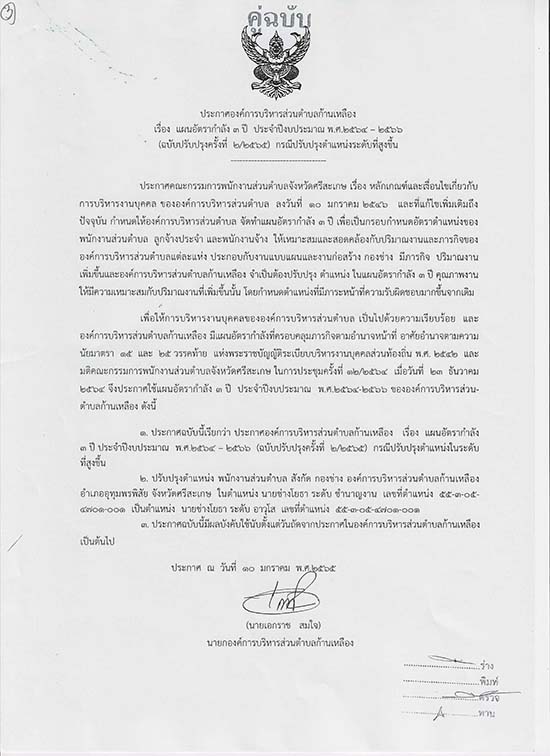 āļ›āļĢāļ°āļāļēāļĻāļ­āļ‡āļ„āđŒāļāļēāļĢāļšāļĢāļŦāļēāļĢāļŠāđˆāļ§āļ™āļ•āļģāļšāļĨāļāđ‰āļēāļ™āđ€āļŦāļĨāļ·āļ­āļ‡ āđ€āļĢāļ·āđˆāļ­āļ‡ āđāļœāļ™āļ­āļąāļ•āļĢāļēāļāļģāļĨāļąāļ‡ 3 āļ›āļĩ āļ›āļĢāļ°āļˆāļģāļ›āļĩāļ‡āļšāļ›āļĢāļ°āļĄāļēāļ“ āļž.āļĻ. 2564-2566 (āļ‰āļšāļąāļšāļ›āļĢāļąāļšāļ›āļĢāļļāļ‡āļ„āļĢāļąāđ‰āļ‡āļ—āļĩāđˆ 1/2565)