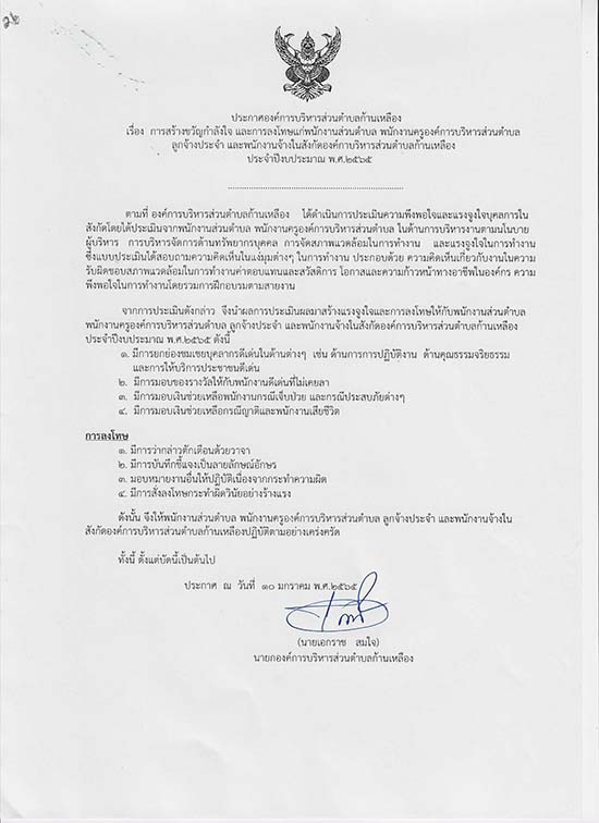 āļ›āļĢāļ°āļāļēāļĻāļ­āļ‡āļ„āđŒāļāļēāļĢāļšāļĢāļŦāļēāļĢāļŠāđˆāļ§āļ™āļ•āļģāļšāļĨāļāđ‰āļēāļ™āđ€āļŦāļĨāļ·āļ­āļ‡ āđ€āļĢāļ·āđˆāļ­āļ‡āļāļēāļĢāļŠāļĢāđ‰āļēāļ‡āļ‚āļ§āļąāļāļāļģāļĨāļąāļ‡āđƒāļˆ āđāļĨāļ°āļāļēāļĢāļĨāļ‡āđ‚āļ—āļĐāđāļāđˆāļžāļ™āļąāļāļ‡āļēāļ™āļŠāđˆāļ§āļ™āļ•āļģāļšāļĨ āļžāļ™āļąāļāļ‡āļēāļ™āļ„āļĢāļđāļ­āļ‡āļ„āđŒāļāļēāļĢāļšāļĢāļīāļŦāļēāļĢāļŠāđˆāļ§āļ™āļ•āļģāļšāļĨ āļĨāļđāļāļˆāđ‰āļēāļ‡ āđāļĨāļ°āļžāļ™āļąāļāļ‡āļēāļ™āļˆāđ‰āļēāļ‡āđƒāļ™āļŠāļąāļ‡āļāļąāļ”āļ­āļ‡āļ„āđŒāļāļēāļĢāļšāļĢāļīāļŦāļēāļĢāļŠāđˆāļ§āļ™āļ•āļģāļšāļĨāļāđ‰āļēāļ™āđ€āļŦāļĨāļ·āļ­āļ‡