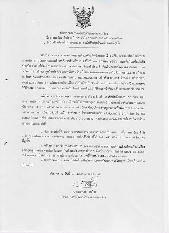 āļ›āļĢāļ°āļāļēāļĻāļ­āļ‡āļ„āđŒāļāļēāļĢāļšāļĢāļŦāļēāļĢāļŠāđˆāļ§āļ™āļ•āļģāļšāļĨāļāđ‰āļēāļ™āđ€āļŦāļĨāļ·āļ­āļ‡ āđ€āļĢāļ·āđˆāļ­āļ‡ āđāļœāļ™āļ­āļąāļ•āļĢāļēāļāļģāļĨāļąāļ‡ 3 āļ›āļĩ āļ›āļĢāļ°āļˆāļģāļ›āļĩāļ‡āļšāļ›āļĢāļ°āļĄāļēāļ“ āļž.āļĻ. 2564-2566 (āļ‰āļšāļąāļšāļ›āļĢāļąāļšāļ›āļĢāļļāļ‡āļ„āļĢāļąāđ‰āļ‡āļ—āļĩāđˆ 2/2565)āļāļĢāļ“āļĩāļ›āļĢāļąāļšāļ›āļĢāļļāļ‡āļ•āļģāđāļŦāļ™āđˆāļ‡āļ—āļĩāđˆāļŠāļđāļ‡āļ‚āļ·āđ‰āļ™