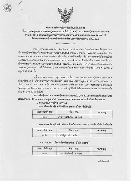 āļ›āļĢāļ°āļāļēāļĻāļ­āļ‡āļ„āđŒāļāļēāļĢāļšāļĢāļīāļŦāļēāļĢāļŠāđˆāļ§āļ™āļ•āļģāļšāļĨāļāđ‰āļēāļ™āđ€āļŦāļĨāļ·āļ­āļ‡ āđ€āļĢāļ·āđˆāļ­āļ‡ āļĢāļēāļĒāļŠāļ·āđˆāļ­āļœāļđāđ‰āļŠāļ­āļšāļœāđˆāļēāļ™āļ āļēāļ„āļ„āļ§āļēāļĄāļĢāļđāđ‰āļ„āļ§āļēāļĄāļŠāļēāļĄāļēāļĢāļ–āļ—āļąāđˆāļ§āđ„āļ›(āļ āļēāļ„ āļ)āđāļĨāļ°āļ āļēāļ„āļ„āļ§āļēāļĄāļĢāļđāđ‰āļ„āļ§āļēāļĄāļŠāļēāļĄāļēāļĢāļ–āđ€āļ‰āļžāļēāļ°āļ•āļģāđāļŦāļ™āđˆāļ‡(āļ āļēāļ„ āļ‚)āđāļĨāļ°āđ€āļ›āđ‡āļ™āļœāļđāđ‰āļĄāļĩāļŠāļīāļ—āļ˜āļīāđ€āļ‚āđ‰āļēāļĢāļąāļšāļāļēāļĢāļ—āļ”āļŠāļ­āļšāļ āļēāļ„āļ„āļ§āļēāļĄāđ€āļŦāļĄāļēāļ°āļŠāļĄāļāļąāļšāļ•āļģāđāļŦāļ™āđˆāļ‡(āļ āļēāļ„ āļ„)āđƒāļ™āļāļēāļĢāļŠāļĢāļĢāļŦāļēāđāļĨāļ°āđ€āļĨāļ·āļ­āļāļŠāļĢāļĢāđ€āļ›āđ‡āļ™āļžāļ™āļąāļāļ‡āļēāļ™āļˆāđ‰āļēāļ‡ āļ›āļĩāļ‡āļšāļ›āļĢāļ°āļĄāļēāļ“ āļžāļĻ.2565