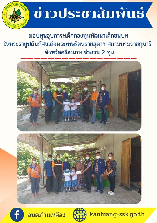 āđ„āļ”āđ‰āļĢāđˆāļ§āļĄāļĄāļ­āļšāļ—āļļāļ™āļāļēāļĢāļĻāļķāļāļĐāļēāļ—āļļāļ™āļ­āļļāļ›āļāļēāļĢāļ°āđ€āļ”āđ‡āļāļāļ­āļ‡āļ—āļļāļ™āļžāļąāļ’āļ™āļēāđ€āļ”āđ‡āļāļŠāļ™āļšāļ—āđƒāļ™āļžāļĢāļ°āļĢāļēāļŠāļđāļ›āļ–āļąāļĄāļ āđŒ āļŠāļĄāđ€āļ”āđ‡āļˆāļžāļĢāļ°āđ€āļ—āļžāļĢāļąāļ•āļ™āļĢāļēāļŠāļŠāļļāļ”āļēāļŊ āļŠāļĒāļēāļĄāļšāļĢāļĄāļĢāļēāļŠāļāļļāļĄāļēāļĢāļĩ āļˆāļąāļ‡āļŦāļ§āļąāļ”āļĻāļĢāļĩāļŠāļ°āđ€āļāļĐ āđƒāļŦāđ‰āļāļąāļšāđ€āļ”āđ‡āļāđƒāļ™āļ„āļĢāļąāļ§āđ€āļĢāļ·āļ­āļ™āļ—āļĩāđˆāļ•āļāđ€āļāļ“āļ‘āđŒ āļˆāļ›āļ.āļ•āļēāļĄ TPMAP āļ›āļĩ 2564 āļˆāļģāļ™āļ§āļ™ 2 āļĢāļēāļĒ āđ† āļĨāļ° 1,500 āļšāļēāļ— āļ—āļĩ #āļšāđ‰āļēāļ™āļŦāļ™āļ­āļ‡āđ€āļŦāļĨāđ‡āļ #āļŦāļĄāļđāđˆāļ—āļĩāđˆ9 #āļ•āļģāļšāļĨāļāđ‰āļēāļ™āđ€āļŦāļĨāļ·āļ­āļ‡