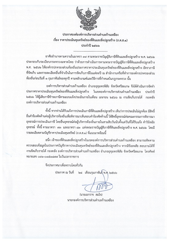 āļ›āļĢāļ°āļāļēāļĻ āđ€āļĢāļ·āđˆāļ­āļ‡ āļĢāļēāļ„āļēāļ›āļĢāļ°āđ€āļĄāļīāļ™āļ—āļļāļ™āļ—āļĢāļąāļžāļĒāđŒāļ‚āļ­āļ‡āļ—āļĩāđˆāļ”āļīāļ™āđāļĨāļ°āļŠāļīāđˆāļ‡āļ›āļĨāļđāļāļŠāļĢāđ‰āļēāļ‡ (āļ .āļ”.āļŠ.āđ‘) āļ›āļĢāļ°āļˆāļģāļ›āļĩ āđ’āđ•āđ–āđ–