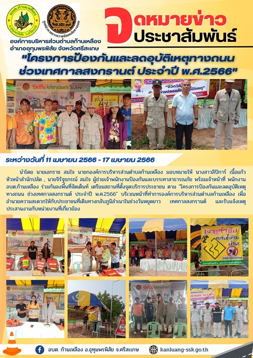 āđ‚āļ„āļĢāļ‡āļāļēāļĢāļ›āđ‰āļ­āļ‡āļāļąāļ™āđāļĨāļ°āļĨāļ”āļ­āļļāļšāļąāļ•āļīāđ€āļŦāļ•āļļāļ—āļēāļ‡āļ–āļ™āļ™ āļŠāđˆāļ§āļ‡āđ€āļ—āļĻāļāļēāļĨāļŠāļ‡āļāļĢāļēāļ™āļ•āđŒ āļ›āļĢāļ°āļˆāļģāļ›āļĩ āļž.āļĻ.2566