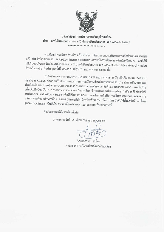 āļ›āļĢāļ°āļāļēāļĻāļ­āļ‡āļ„āđŒāļāļēāļĢāļšāļĢāļŦāļēāļĢāļŠāđˆāļ§āļ™āļ•āļģāļšāļĨāļāđ‰āļēāļ™āđ€āļŦāļĨāļ·āļ­āļ‡ āđ€āļĢāļ·āđˆāļ­āļ‡ āđāļœāļ™āļ­āļąāļ•āļĢāļēāļāļģāļĨāļąāļ‡ 3 āļ›āļĩ āļ›āļĢāļ°āļˆāļģāļ›āļĩāļ‡āļšāļ›āļĢāļ°āļĄāļēāļ“ āļž.āļĻ. 2567 - 2569
