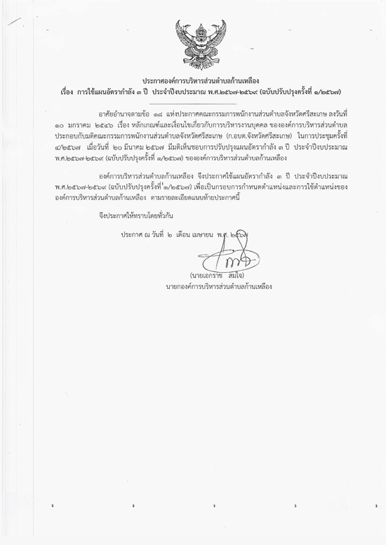 āļ›āļĢāļ°āļāļēāļĻāļ­āļ‡āļ„āđŒāļāļēāļĢāļšāļĢāļŦāļēāļĢāļŠāđˆāļ§āļ™āļ•āļģāļšāļĨāļāđ‰āļēāļ™āđ€āļŦāļĨāļ·āļ­āļ‡ āđ€āļĢāļ·āđˆāļ­āļ‡ āđāļœāļ™āļ­āļąāļ•āļĢāļēāļāļģāļĨāļąāļ‡ 3 āļ›āļĩ āļ›āļĢāļ°āļˆāļģāļ›āļĩāļ‡āļšāļ›āļĢāļ°āļĄāļēāļ“ āļž.āļĻ. 2567 - 2569 (āļ‰āļšāļąāļšāļ›āļĢāļąāļšāļ›āļĢāļļāļ‡āļ„āļĢāļąāđ‰āļ‡āļ—āļĩāđˆ 1/2567)