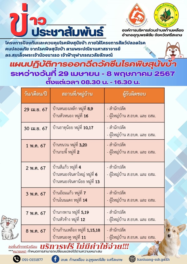 āļāļģāļŦāļ™āļ”āđāļœāļ™āļ›āļāļīāļšāļąāļ•āļīāļāļēāļĢāļ‰āļĩāļ”āļ§āļąāļ„āļ‹āļĩāļ™āļ›āđ‰āļ­āļ‡āļāļąāļ™āđ‚āļĢāļ„āļžāļīāļĐāļŠāļļāļ™āļąāļ‚āļšāđ‰āļē āļ›āļĢāļ°āļˆāļģāļ›āļĩāļ‡āļšāļ›āļĢāļ°āļĄāļēāļ“ āļž.āļĻ. 2567