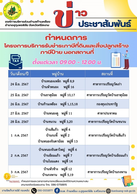 āļ›āļĢāļ°āļŠāļēāļŠāļąāļĄāļžāļąāļ™āļ˜āđŒ āļāļģāļŦāļ™āļ”āļāļēāļĢāļ­āļ­āļāđƒāļŦāđ‰āļšāļĢāļīāļāļēāļĢāļĢāļąāļšāļŠāļģāļĢāļ°āļ āļēāļĐāļĩāļ—āļĩāđˆāļ”āļīāļ™āđāļĨāļ°āļŠāļīāđˆāļ‡āļ›āļĨāļđāļāļŠāļĢāđ‰āļēāļ‡ āļ āļēāļĐāļĩāļ›āđ‰āļēāļĒ āļ™āļ­āļāļŠāļ–āļēāļ™āļ—āļĩāđˆ āļ›āļĢāļ°āļˆāļģāļ›āļĩāļ‡āļšāļ›āļĢāļ°āļĄāļēāļ“ 2567