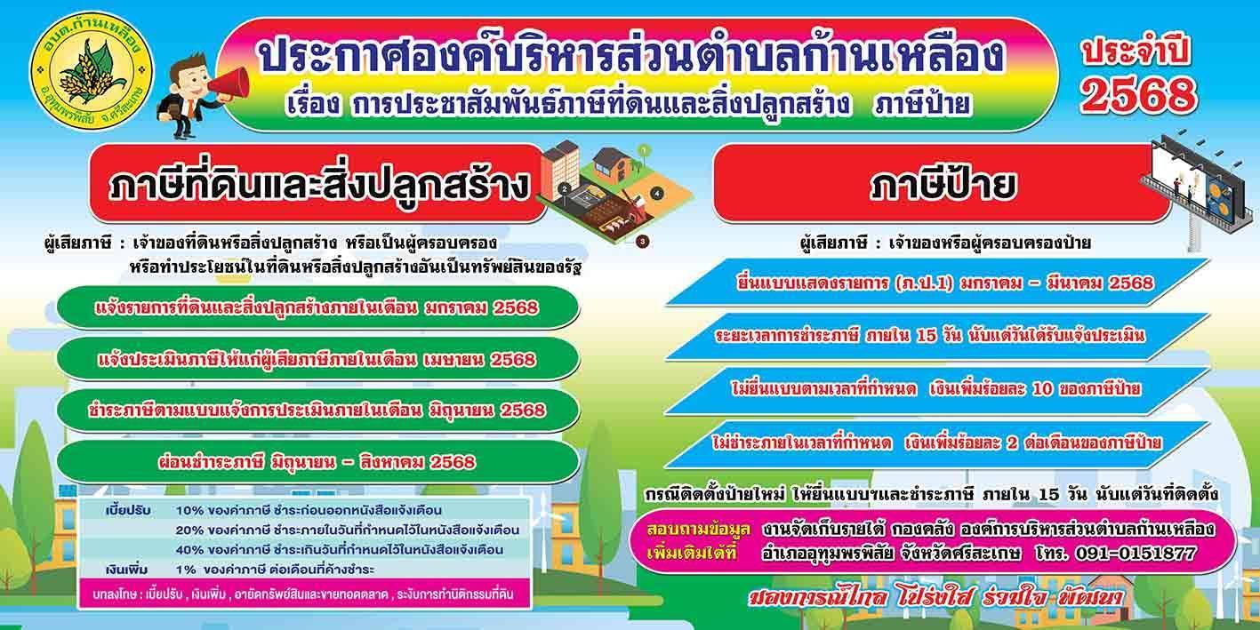āļ›āļĢāļ°āļāļēāļĻ āđ€āļĢāļ·āđˆāļ­āļ‡ āļ›āļĢāļ°āļŠāļēāļŠāļąāļĄāļžāļąāļ™āļ˜āđŒāļāļēāļĢāļˆāļąāļ”āđ€āļāđ‡āļšāļ āļēāļĐāļĩāļ—āļĩāđˆāļ”āļīāļ™āđāļĨāļ°āļŠāļīāđˆāļ‡āļ›āļĨāļđāļāļŠāļĢāđ‰āļēāļ‡ āļ āļēāļĐāļĩāļ›āđ‰āļēāļĒ āļ›āļĢāļ°āļˆāļģāļ›āļĩ āļž.āļĻ.2568